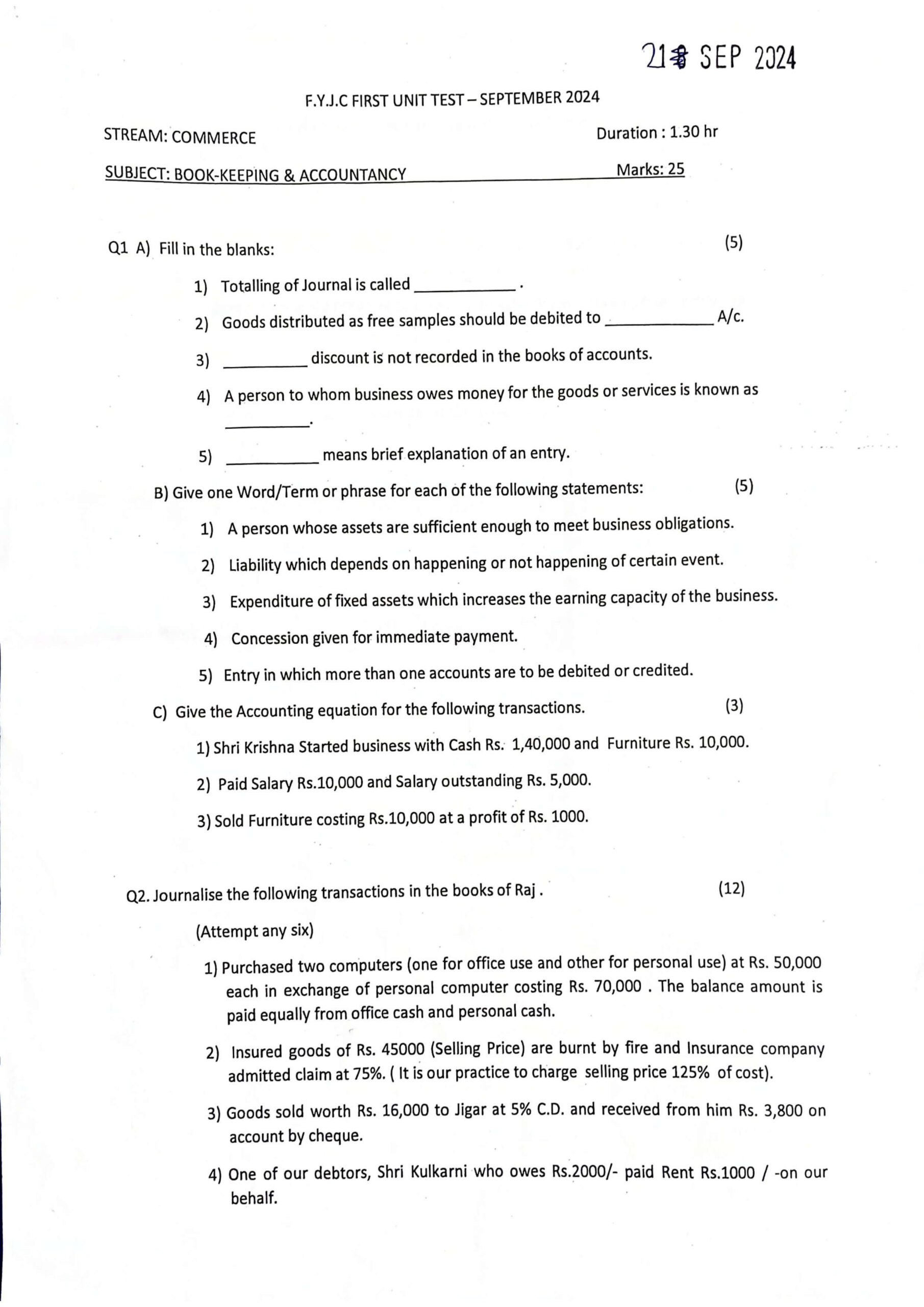 XI BK 1ST SEMESTER EXAM